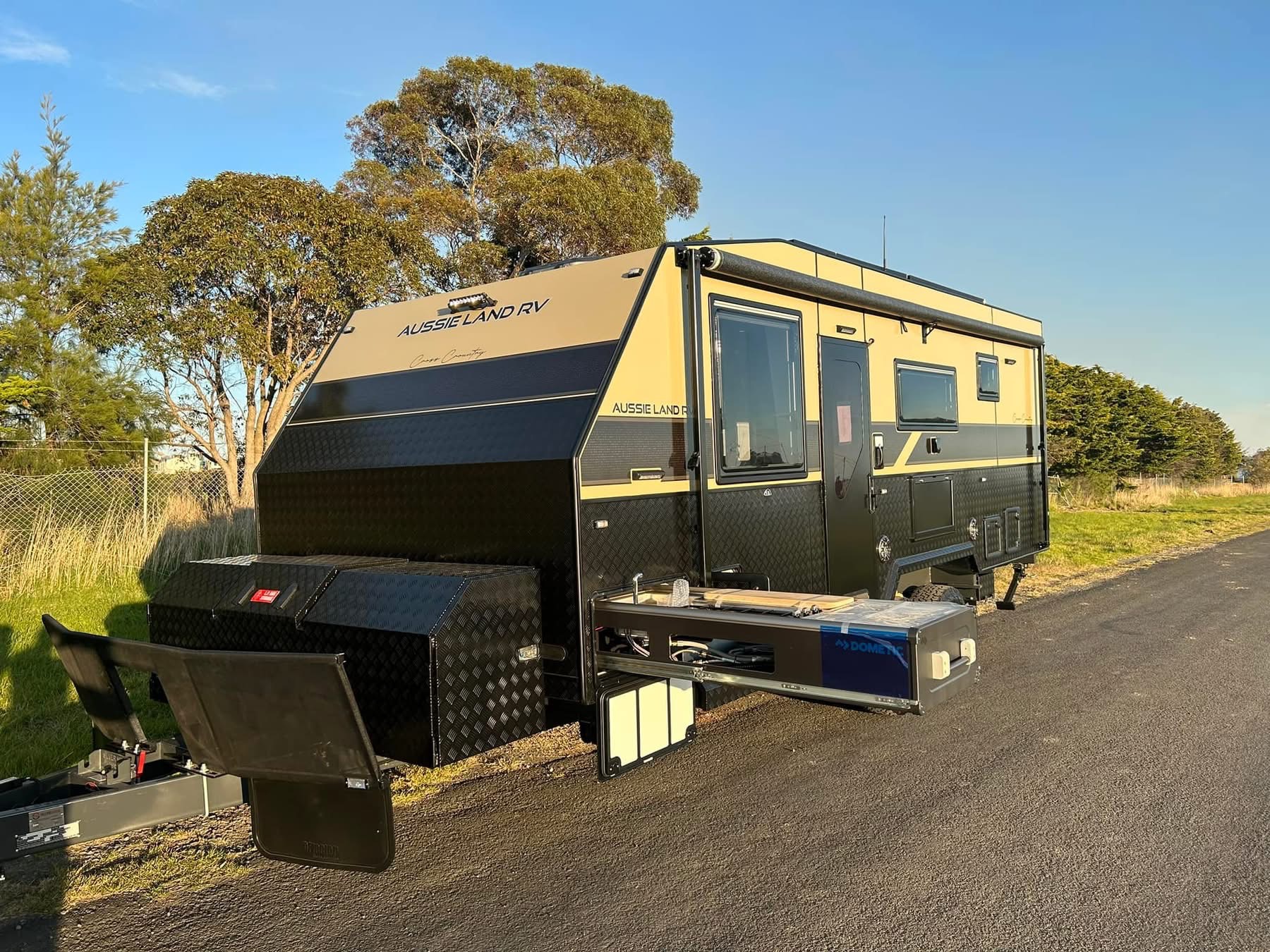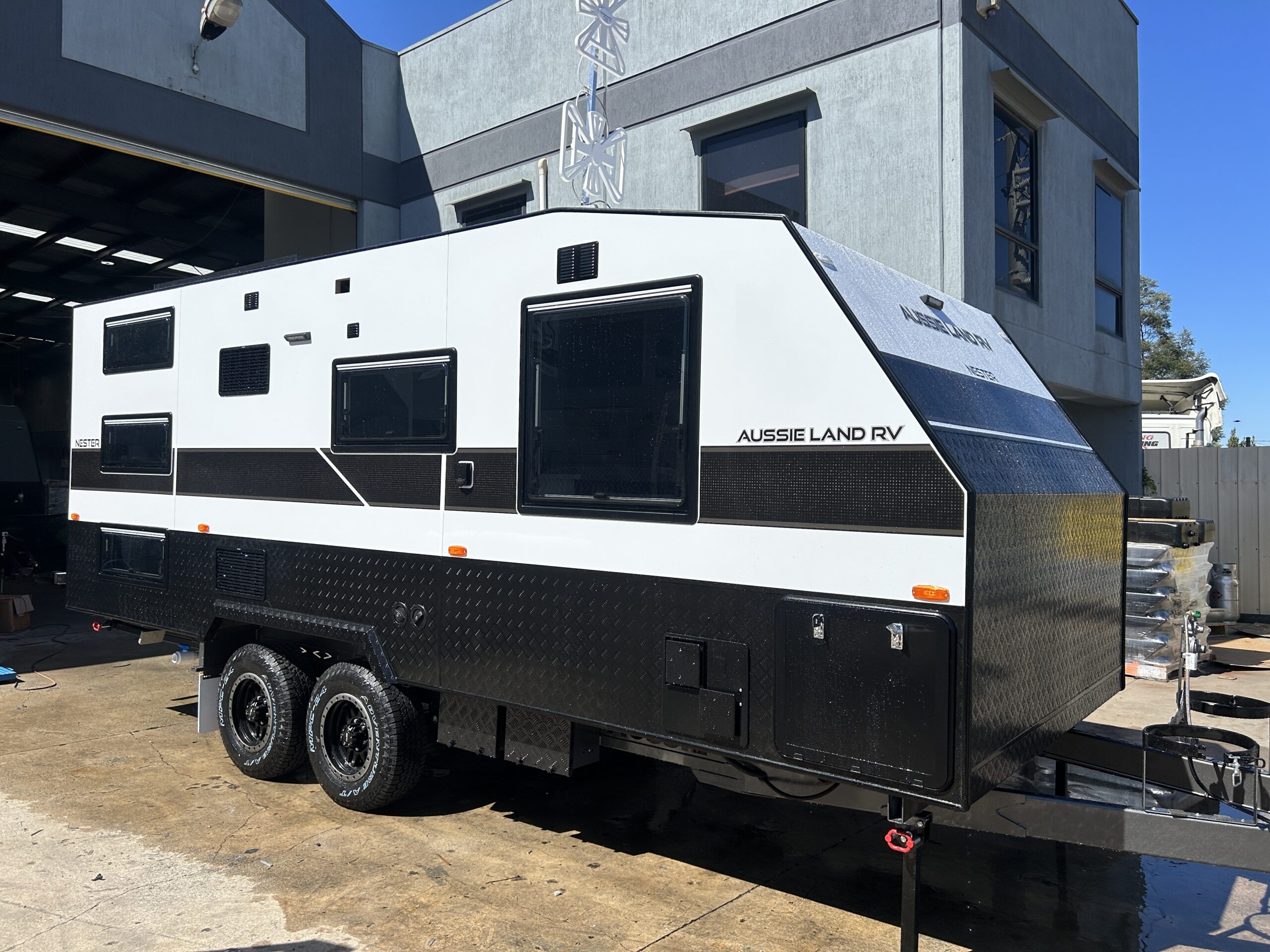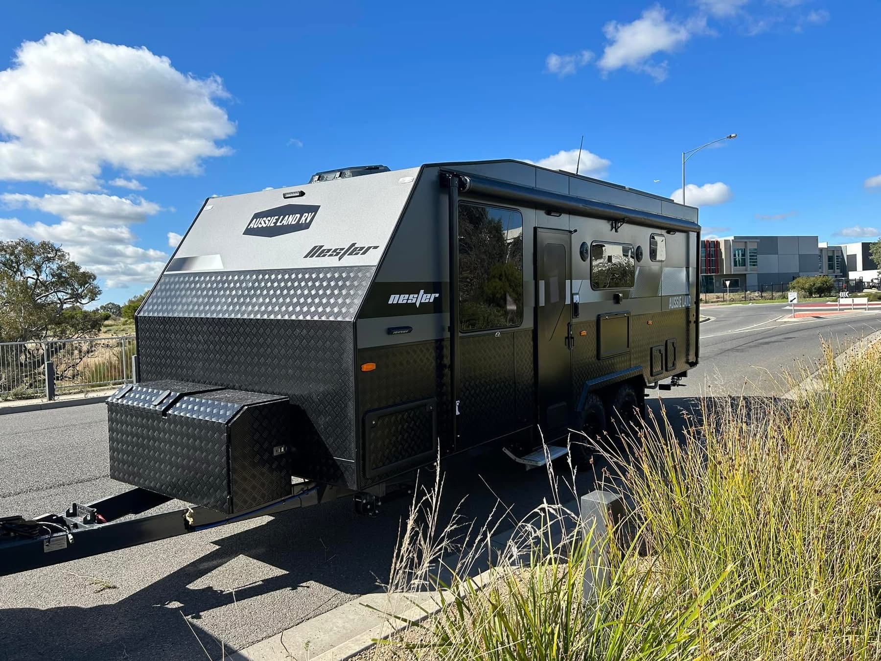 Exterior — Built to Endure, Styled to Impress Every Aussie Land RV caravan is engineered to thrive in the harshest Australian conditions — from corrugated outback tracks to coastal highways. Our exteriors combine strength, durability, and sleek design, giving you confidence on any terrain.