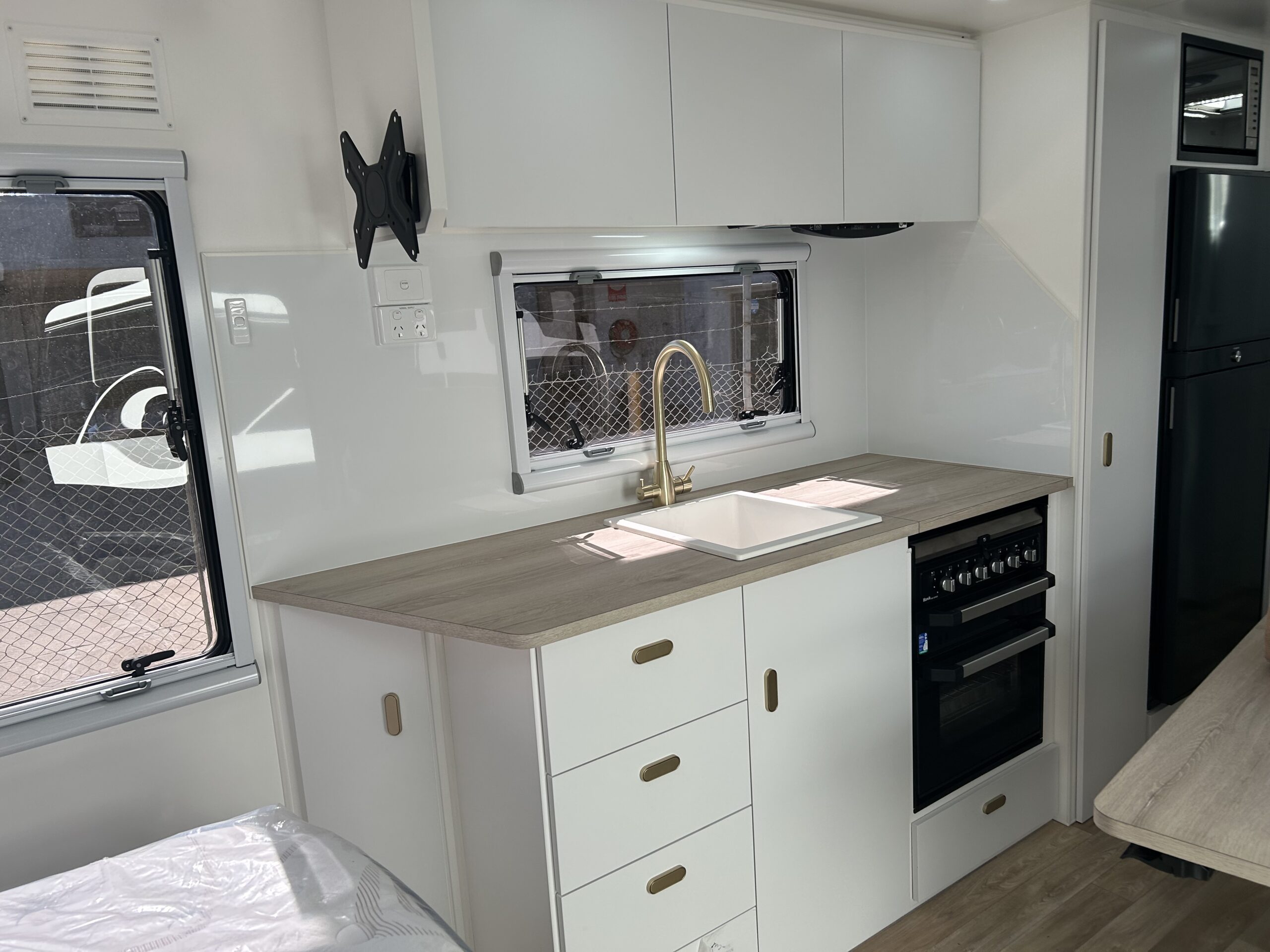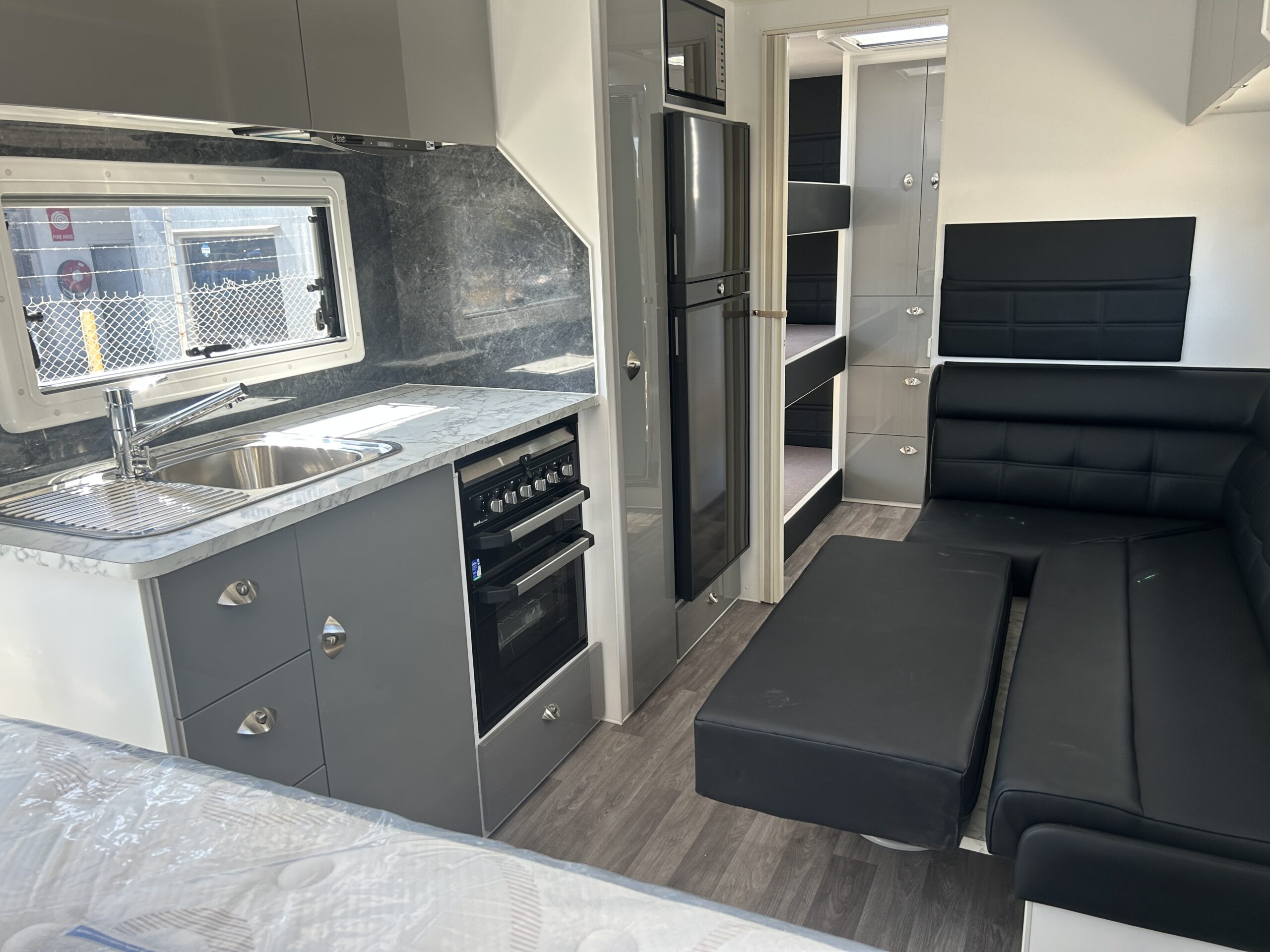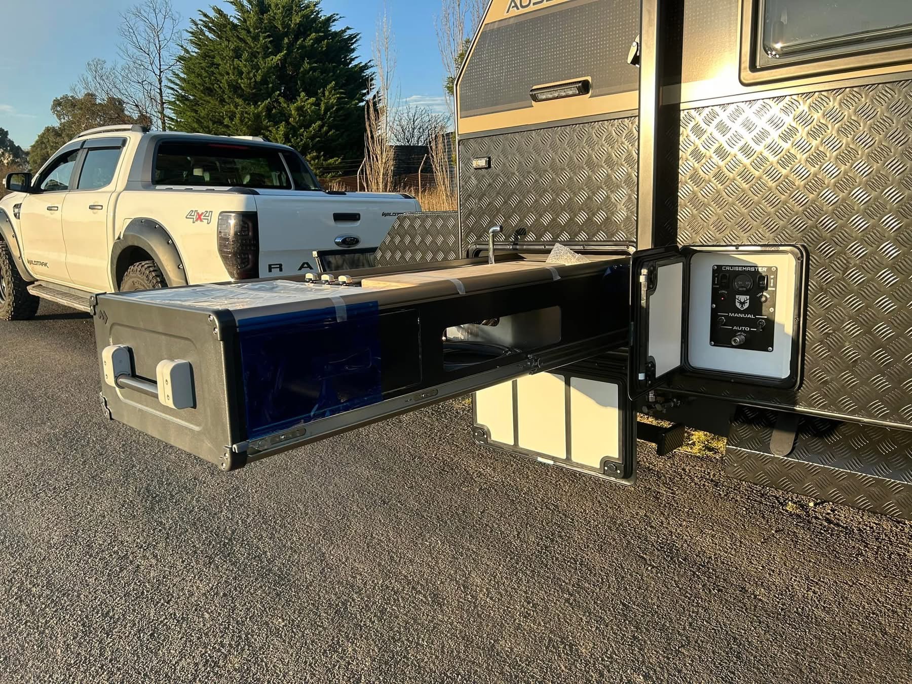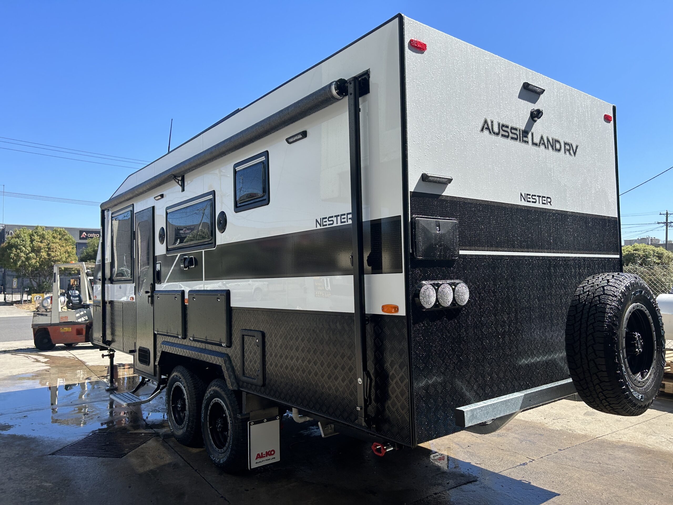 Exterior — Built to Endure, Styled to Impress Every Aussie Land RV caravan is engineered to thrive in the harshest Australian conditions — from corrugated outback tracks to coastal highways. Our exteriors combine strength, durability, and sleek design, giving you confidence on any terrain.